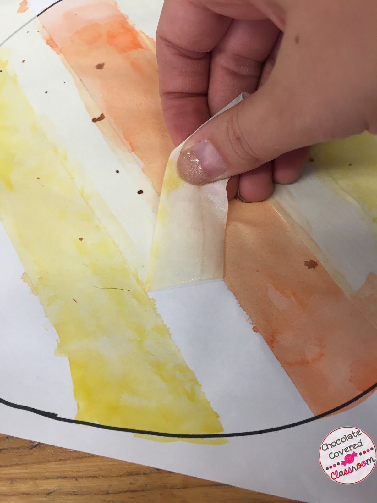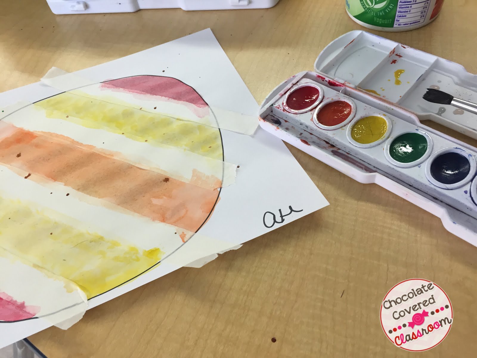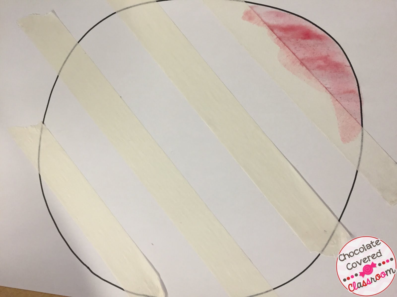 Use masking tape to make a design on your dot. I chose to do stripes but some of my students wrote their initials, symbols and even words with the masking tape!
