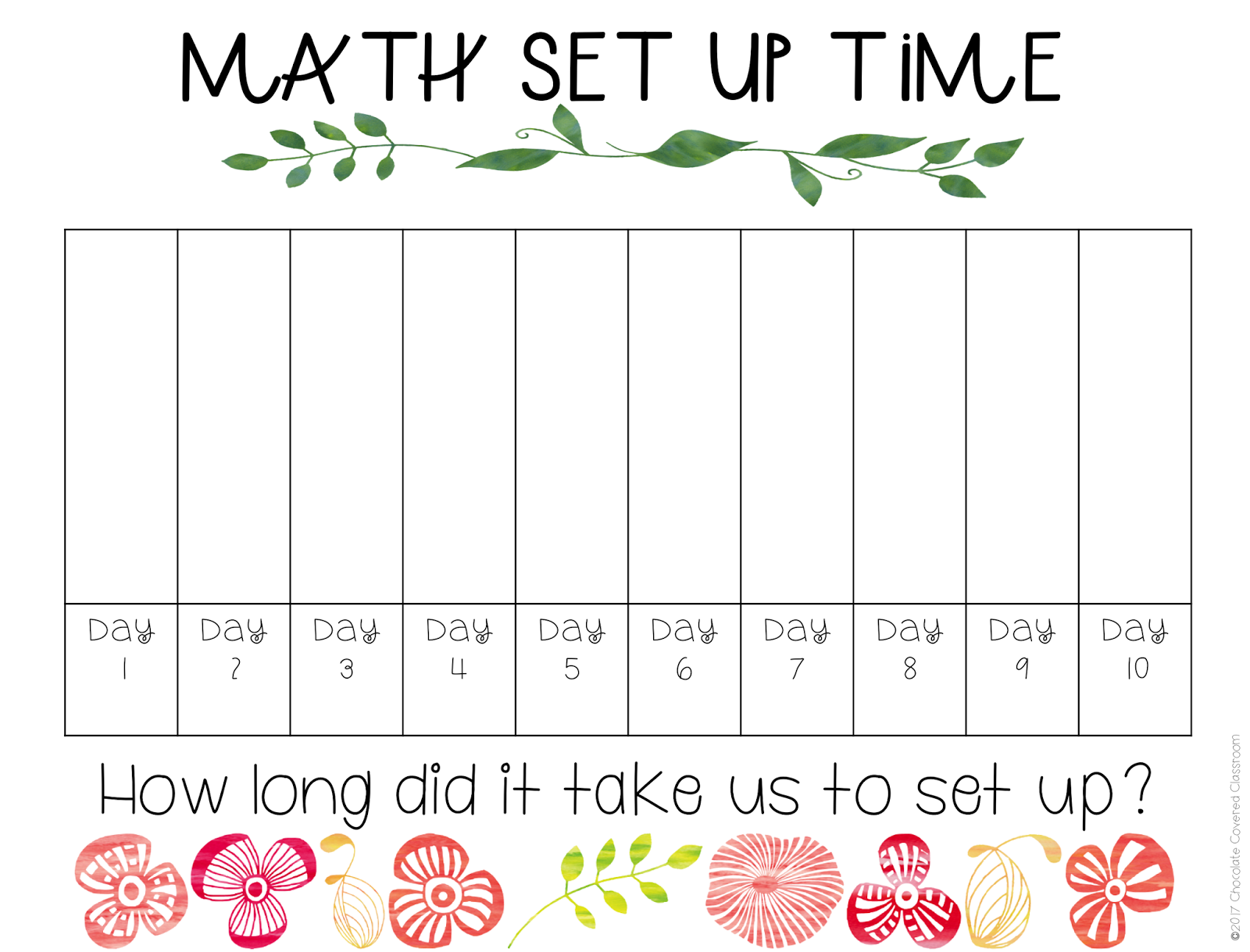 I start a timer and explain to my students that we are trying to get started as quickly as possible, to make good use of our math time.