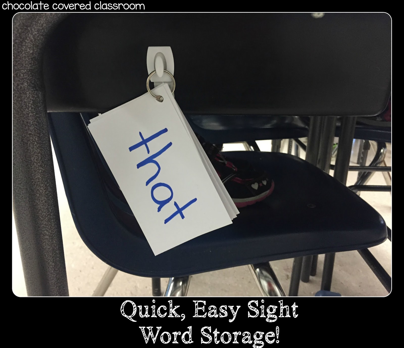 Each of my English Language Learners, working at a grade 1 level, has their own command hook stuck to their desk. This acts as storage for their sight words! I usually give them each around five words at a time.
